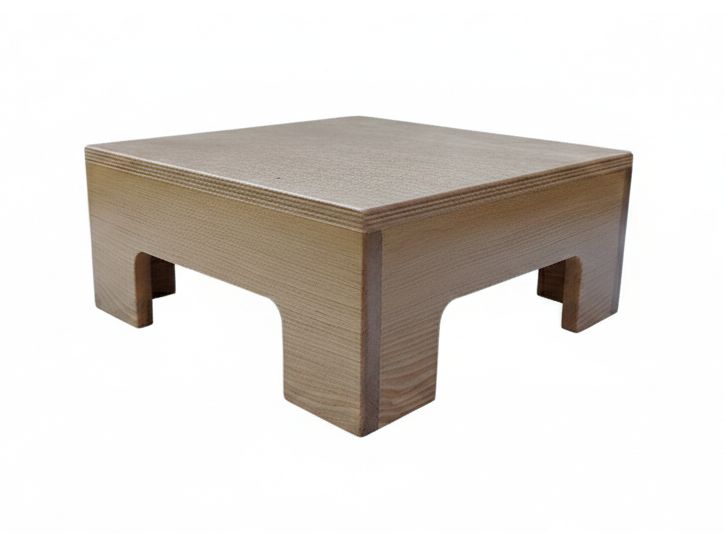 La base con forma de mesita cumple la función de soporte para la Torre Rosa al momento de presentarla.
