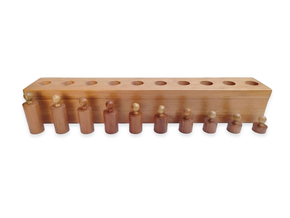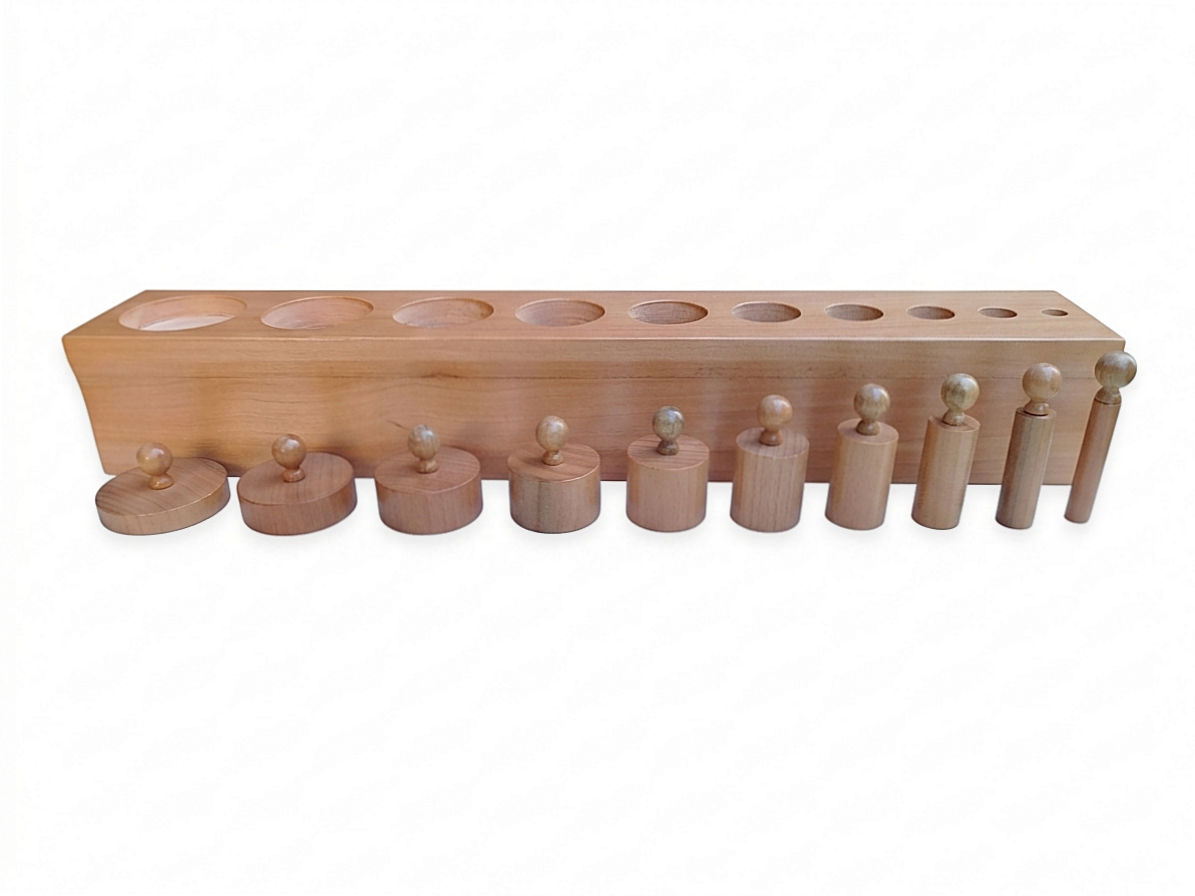 - Control de error: Al colocar un cilindro en un orificio equivocado, el niño lo notará inmediatamente, permitiendo que corrija su propio error sin intervención del adulto.